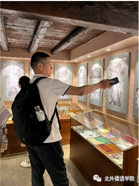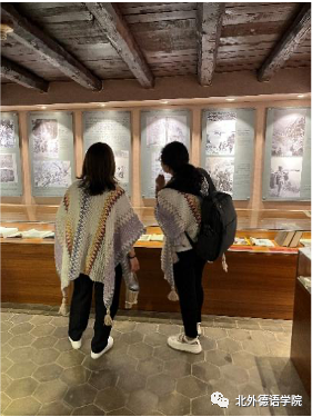 洛克故居门前用东巴文书写的对联“新年新月新气象 千花万花已出来(根据纳西族阿妈介绍音译)”让党员教师感受到了象形文字的魅力。