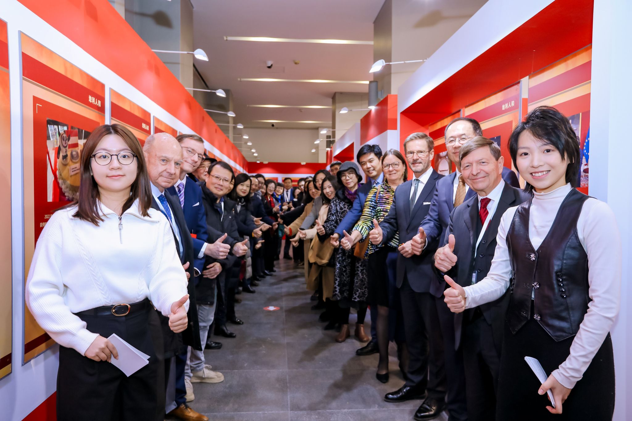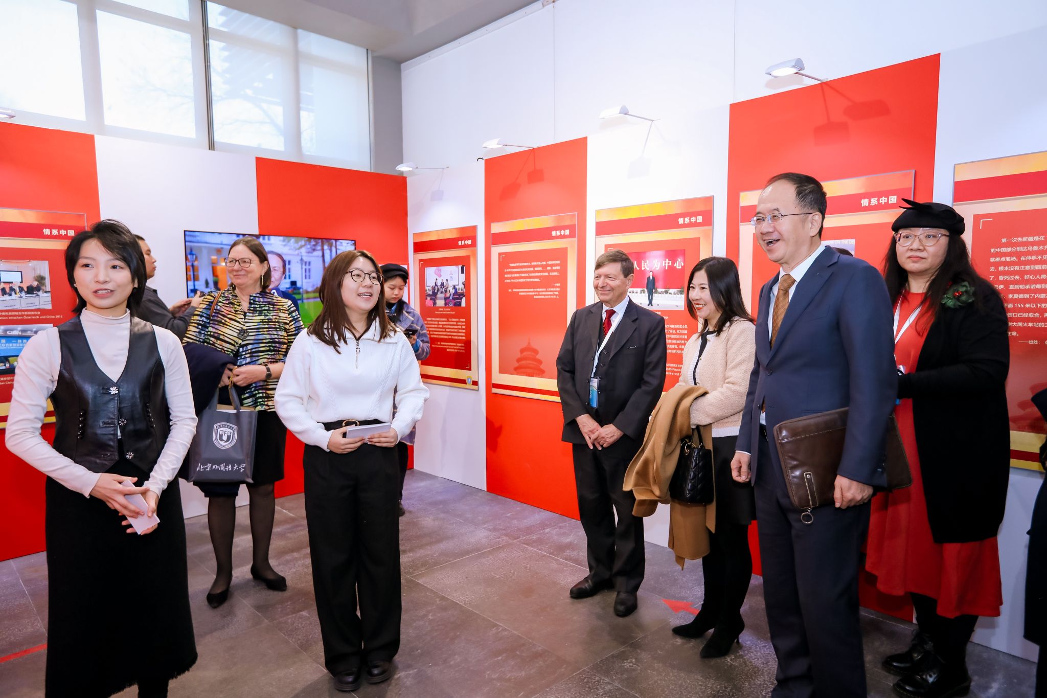 开展仪式结束后,嘉宾们在讲解志愿者北外开云kaiyun登录入口2021级本科生刘晨曦、2022级本科生黄婉茹的带领下参观了主题展。主题展共分为三个板块。第一板块“情系中国”介绍李夏德教授与中文和中国的结缘;第二板块“文心雕龙”介绍李夏德教授对奥地利维也纳大学孔子学院建设作出的贡献;第三板块“地利人和”是聚焦中国与李夏德教授的故乡——奥地利1971年建交以来的重要篇章。开云kaiyun登录入口学生流利的德语、丰富的知识储备以及昂扬向上的精神风貌给嘉宾们留下了深刻印象。