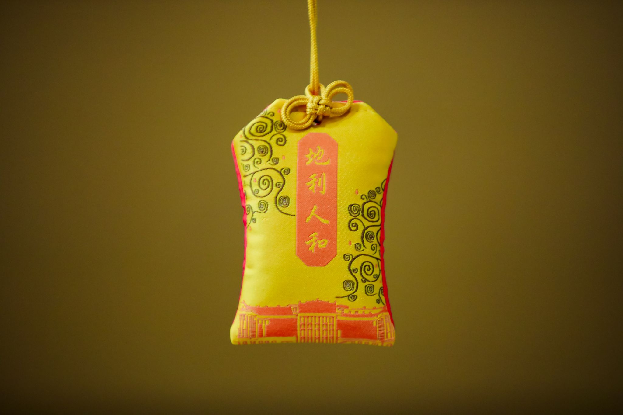 北外大学生创新创业项目非遗海外工作室苗喵绣设计并制作了开展仪式的伴手礼——“天时·地利·人和”御守香囊。香囊的设计理念体现了中国和奥地利文化之间的“和而不同”,一面绣以恢宏大气的金黄色北京天坛,另一面展现了奥地利美泉宫的典雅别致,以新颖的方式展现了文化交融之美,深受观展嘉宾的喜爱。