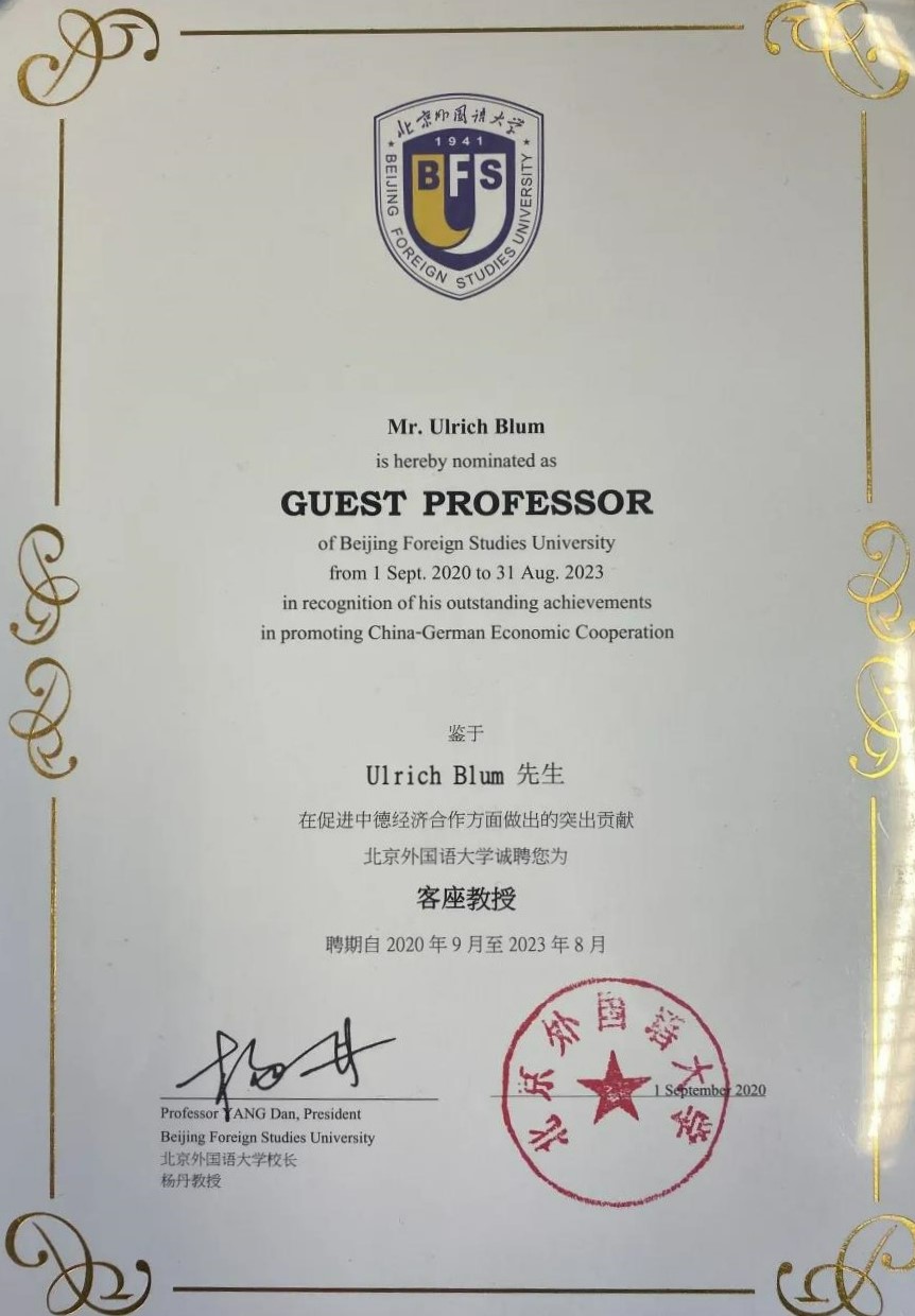 鉴于其在促进中德经济合作方面做出的突出贡献,德国哈勒-维滕贝格大学经济系讲席教授、弗劳恩霍夫协会材料经济学中心创始人卜玉洗(Ulrich Blum)自本学期起被聘为开云kaiyun登录入口客座教授,聘期三年。