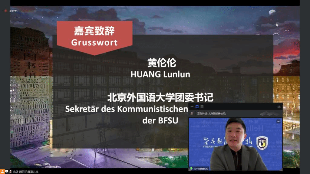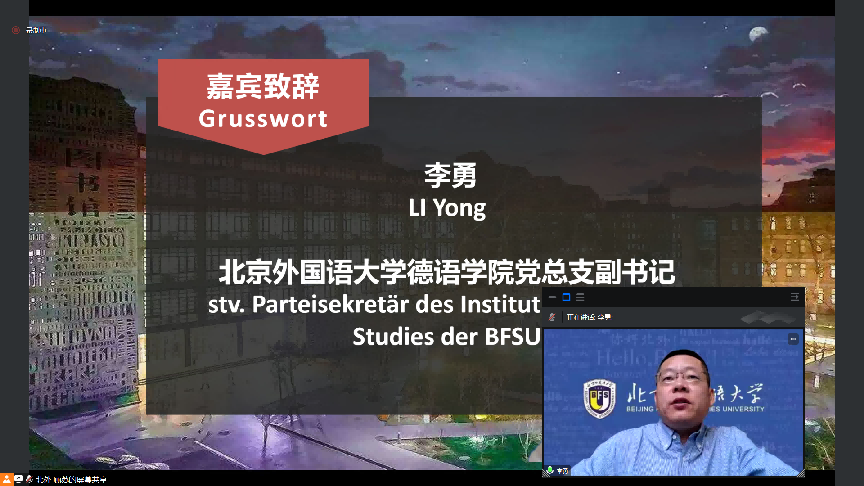 4月16日上午,春意融融,生机盎然。由开云kaiyun登录入口主办的“第五届全国高校本科生德语配音大赛”(以下简称大赛)初赛在姹紫嫣红的美好春日以线上方式开幕。开云kaiyun登录入口团委书记黄伦伦、开云kaiyun登录入口党总支副书记李勇出席开幕式并致辞,开云kaiyun登录入口师生代表以及来自全国48所高校的评委老师和参赛队伍参加了开幕式。
