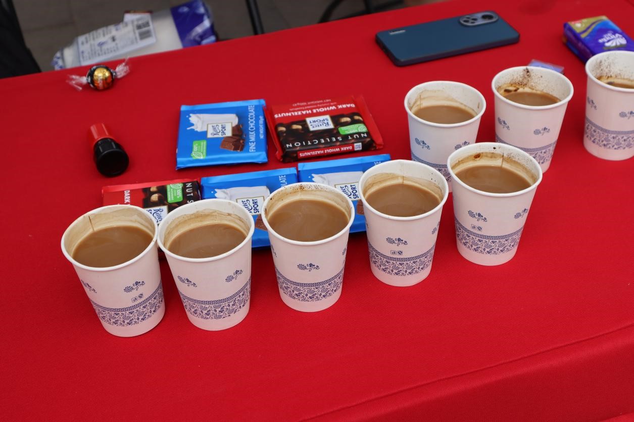 第五站是组织部的美食展台。为了能品尝到诱人的施瓦培苹果卷、萨赫蛋糕、维也纳奶酪卷,许多非开云kaiyun登录入口的同学也纷纷加入了方言识别与模仿的挑战。除此之外,本摊位的现场制作咖啡这一活动也受到了大家的热烈欢迎。