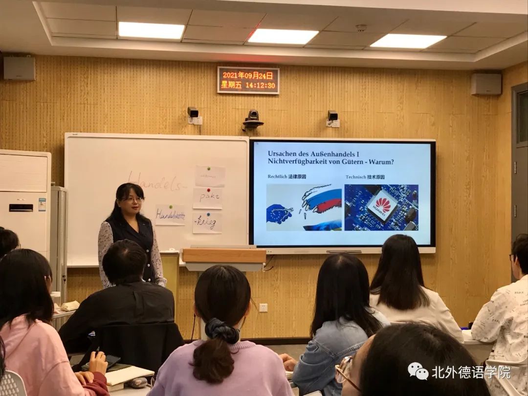 徐四季老师常年深耕德语国家经济研究领域的教学和科研工作。作为经济教研室主任、本科三年级教学组长和德国研究中心助理,她秉承我院德国经济系列课程的优良教学传统,致力于提升学生的国情研判力和思辨力,培养兼具中国情怀和国际视野的专业复合型德语人才。在新文科理念下,她积极改革、建设德语专业区域与国别研究方向课程《经济知识导论》和《经济知识练习》,在既有“语言(德语)+专业(经济)”复合的基础上,进一步实现外国语言文学和经济学、管理学的深度交叉融合;同时坚持贯彻课程思政的方针,新开设“理解当代中国”系列课程《讲述当代中国》,将习近平新时代中国特色社会主义思想的传授与德语演讲能力的培养有机融合,努力提高我院学生用德语讲好中国故事的能力。