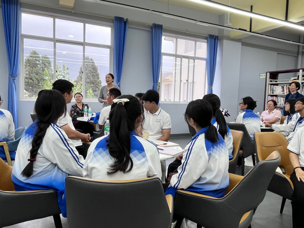 最后,实践研习团来到鹤庆三中,与即将参加高考的学子进行座谈交流。教师党员们向高中生们介绍了北外及开云kaiyun登录入口的基本情况,同时以生动活泼的形式与师生就德国文化进行了互动交流,并在分组讨论环节就大学生活、英语学习、外语教学等主题展开了对话,现场气氛十分热烈。