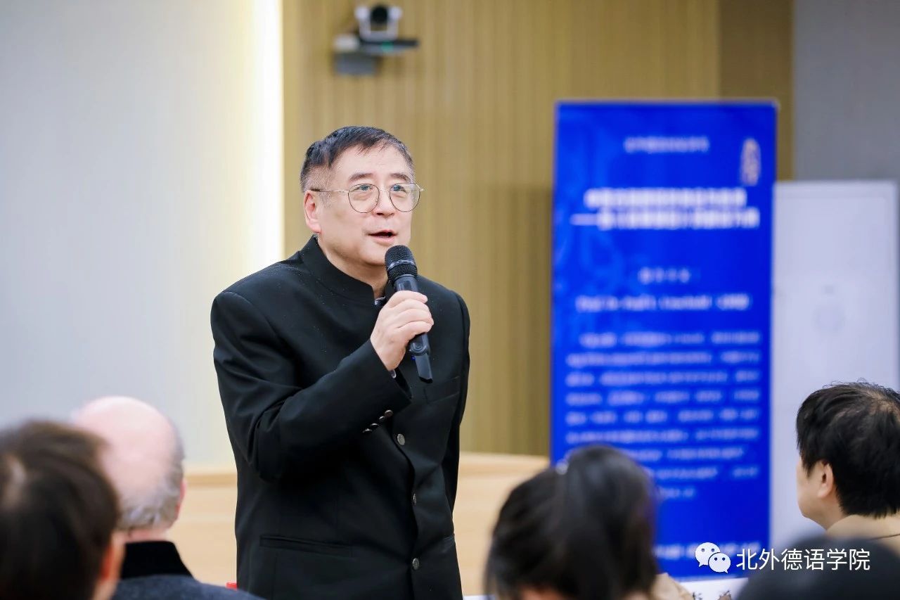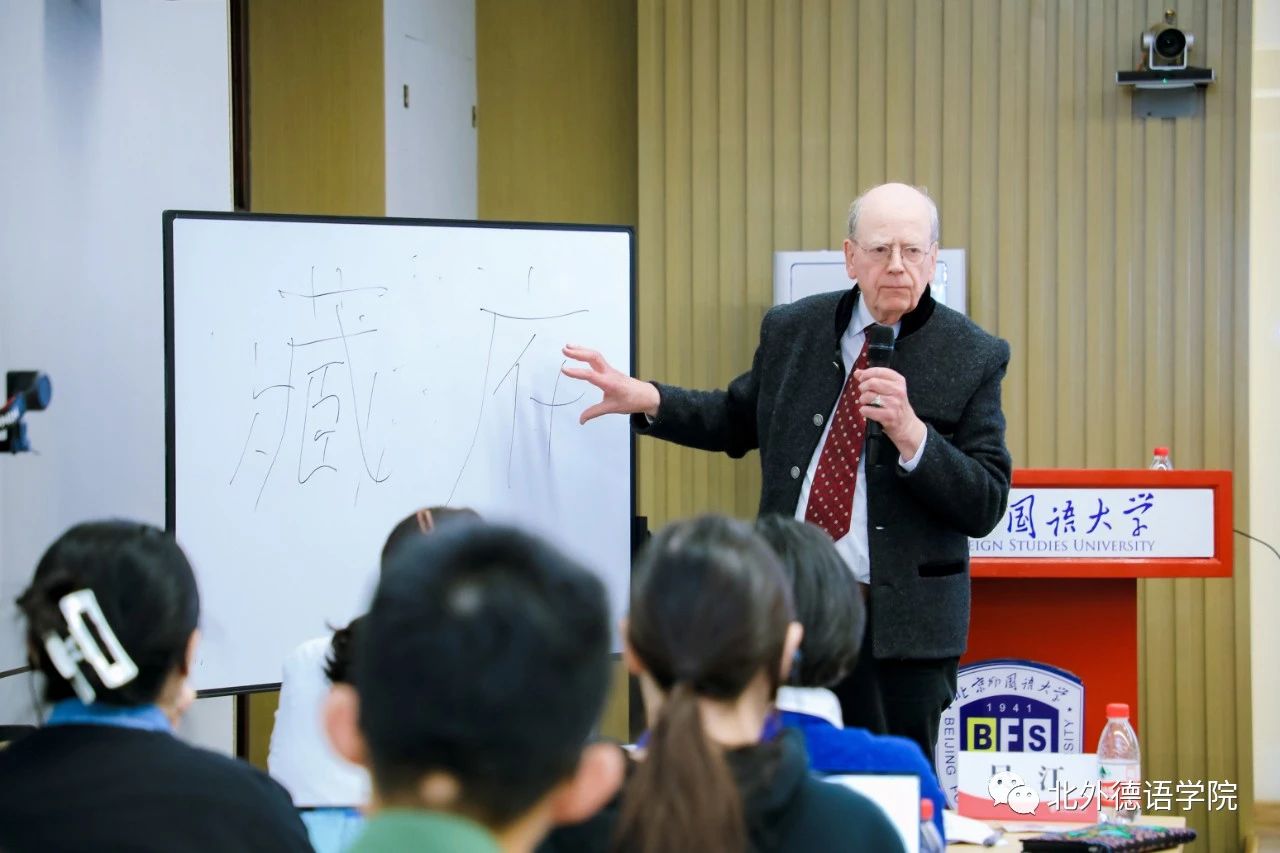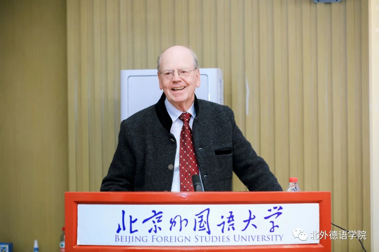 2023年10月18日下午,北外德语国家讲堂系列报告“中医古籍翻译的体会与心得——以《本草纲目》的翻译为例”在开云kaiyun登录入口东院晨读厅成功举办。报告主讲人为德国著名医史学家、翻译家文树德教授(Prof. Dr. Paul U. Unschuld),专攻中、欧医学及生命科学比较史,尤擅长医学思想史、伦理史研究。文树德教授夫人文淑德女士(Ulrike Unschuld)、开云kaiyun登录入口1977级校友、德国Rolux Leuchten GmbH 公司创始人、中国赛尔富电子有限公司董事荣裕民先生,开云kaiyun登录入口党政联席会成员、教师代表及近百名学生聆听讲座。讲座由开云kaiyun登录入口党总支书记、院长吴江主持。