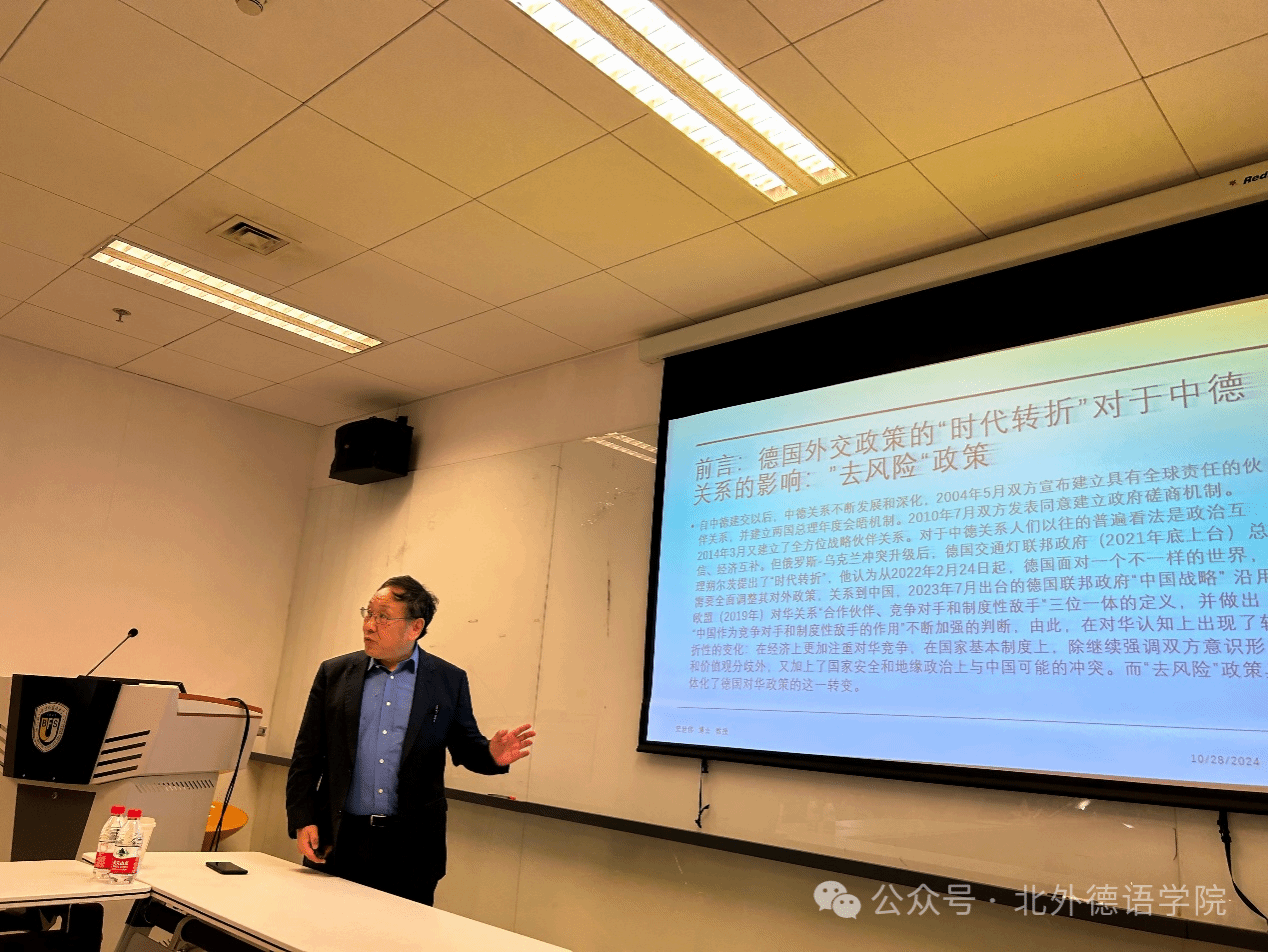 2024年10月28日,对外经济贸易大学外语学院史世伟教授应邀来到开云kaiyun登录入口作题为“德国对外政策的‘时代转折’对中德关系的影响”的主题学术讲座,本次活动系开云kaiyun登录入口人文社科通识系列讲座第11讲。讲座由开云kaiyun登录入口副院长寇蔻主持。