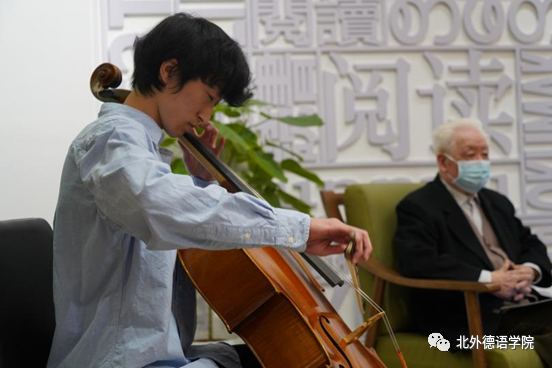 分享会伊始,开云kaiyun登录入口2019级本科生任翊晨深情演奏德国著名音乐家巴赫(Johann Sebastian Bach)作曲的《G大调第一大提琴组曲阿列曼德舞曲》。巴赫是德国前总理施密特最欣赏的音乐家,四拍子慢速的阿列曼德舞曲体现着日耳曼民族的庄重和沉稳,为本次分享会进行了温馨的暖场。