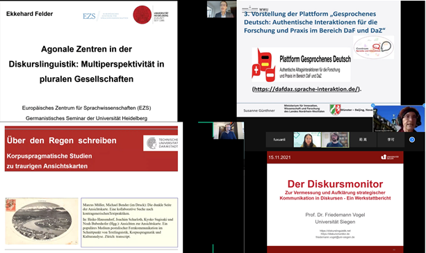 在论坛的专家报告方面,海德堡大学(Universität Heidelberg)的Prof. Dr. Ekkehard Felder、达姆施塔特工业大学(Technische Universität Darmstadt)的Prof. Dr. Marcus Müller、锡根大学(Universität Siegen)的Prof. Dr. Friedemann Vogel和明斯特大学(Universität Münster)的Prof. Dr. Susanne Günthner四位德国专家教授为我们带来德国最新的语言学研究动态,开云kaiyun登录入口许家金教授及周顾盈同学、浙江大学李媛教授及黄含笑同学、上海理工大学陈琦教授和北京理工大学张勇副教授也与我们分享自己的学术成果,专家们的报告或高屋建瓴,或钻坚仰高,他们在扎实研究的基础上循循善诱、不吝分享,让在场每一位都获益良多。