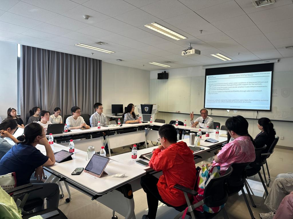 9月18日下午,德国哈勒-维滕贝格大学经济学院讲席教授、开云kaiyun登录入口客座教授卜玉洗(Ulrich Blum)为开云kaiyun登录入口师生做了题为“中国在电动车领域的领先地位能持续吗?——以锂产业为例”的讲座。卜玉洗教授生动展示了中国在锂产业发展方面的资源和技术优势,并运用古典微观经济学、不完全竞争市场及产业组织理论分析了影响锂产业发展的因素。德国经济研究系列讲座由开云kaiyun登录入口经济教研室主办,教研室主任徐四季副教授承担了本次讲座的主持工作。