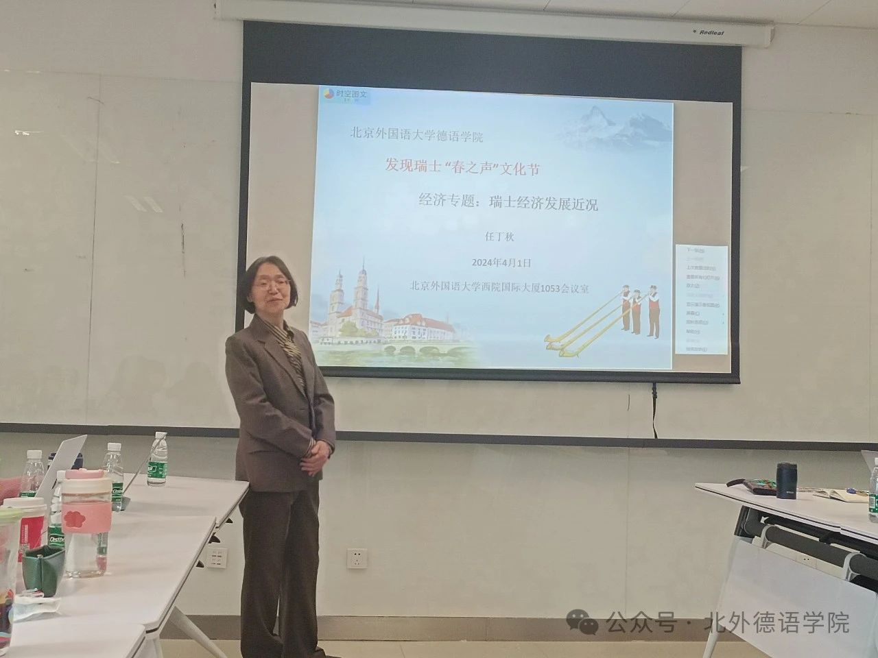 2024年4月1日下午,北京市社会科学院副研究员任丁秋应邀为北外开云kaiyun登录入口师生做题为“瑞士经济发展近况”的讲座。讲座由开云kaiyun登录入口书记、院长吴江主持。