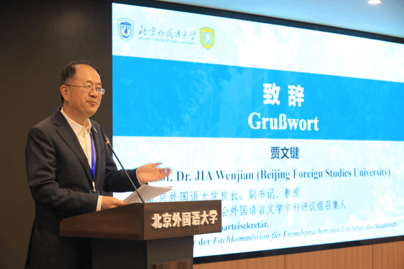 贾文键校长对莅临本次会议的专家学者表示热烈欢迎,对各个兄弟院校及与会单位给予本次会议的大力支持表示衷心感谢。他指出,“全球化·数字化·多元化”回应了当前数字时代交流多样化的命题,也对跨文化交流研究提出了更高要求。他期待与会学者能在此次思想的碰撞中探究如何在数字浪潮中坚守人文温度,为推动中德两国乃至世界范围内的文明互鉴与民心相通注入新的活力。