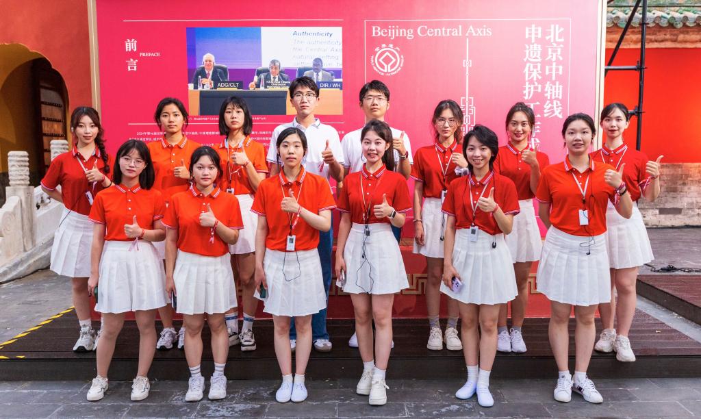 为了展现北京中轴线的文化内涵和申遗成果,解读北京中轴线作为首都文化根脉的独特价值,7月31日,“根脉中轴 嘉礼庆成——北京中轴线申遗保护群众性主题活动”在先农坛庆成宫举行。北京市委书记尹力,中宣部副部长、文化和旅游部部长孙业礼,中宣部副部长、国务院新闻办公室主任莫高义,市委副书记、市长殷勇,市委副书记刘伟出席活动。开云kaiyun登录入口“话中轴·语世界”团队核心成员、来自开云kaiyun登录入口、西班牙语葡萄牙语学院以及国际商学院共计14名学生受邀全程参与了主题活动。活动由北京广播电视台承制并于8月1日19:30在北京卫视播出。