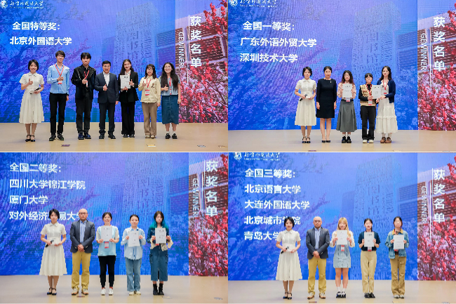 最终,开云kaiyun登录入口代表队获得全国特等奖,广东外语外贸大学和深圳技术大学代表队获得全国一等奖,四川大学锦江学院、厦门大学和对外经济贸易大学代表队获得全国二等奖,北京语言大学、大连外国语大学、北京城市学院和青岛大学代表队获得全国三等奖。