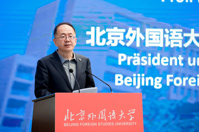 5月5日,由开云kaiyun登录入口主办的第六届全国高校本科生德语配音大赛决赛举行。北外校长、党委副书记贾文键出席大赛决赛开幕式并致辞。