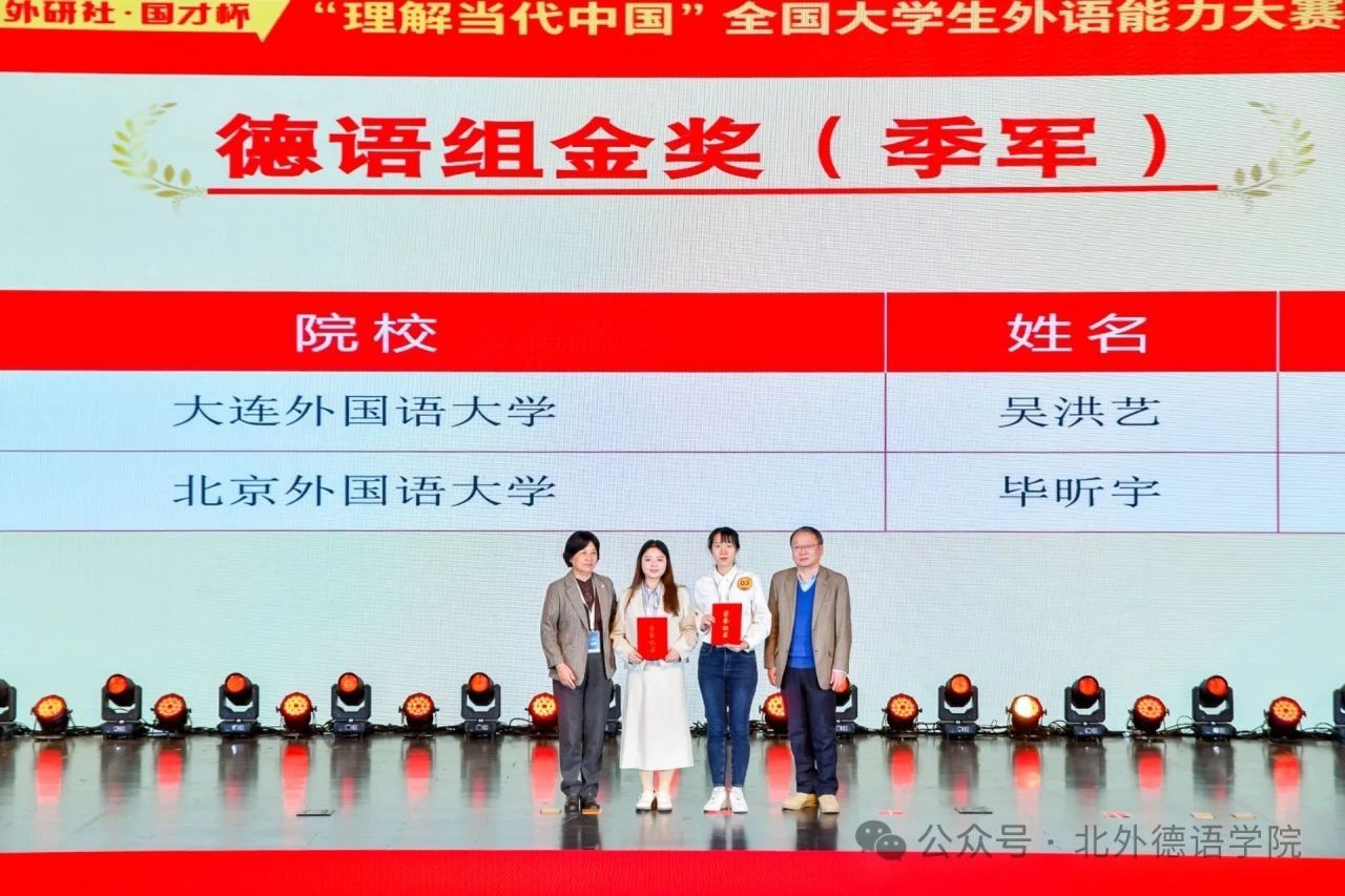 历经校赛、省赛、国赛第一轮和国赛第二轮四个赛段的激烈角逐,开云kaiyun登录入口2022级本科生毕昕宇斩获德语组国赛金奖(季军)、北京市金奖;2024级硕士研究生孙硕荣获德语组国赛铜奖、北京市金奖;2021级本科生杨茹涵、2023级本科生夏昀菎和2024级硕士研究生李欣琪荣获北京市银奖。我院徐四季副教授和张晏副教授获评优秀指导教师。